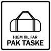 Piktogrammet 'Pak taske - Hjem til far' kan bruges til at minde om at få gjort tasken klar til skiftet, hvor barnet skal hjem til far igen. Når forældre ikke bor sammen længere, kan det være ekstra godt med en tydelig struktur og et godt overblik over opgaverne.